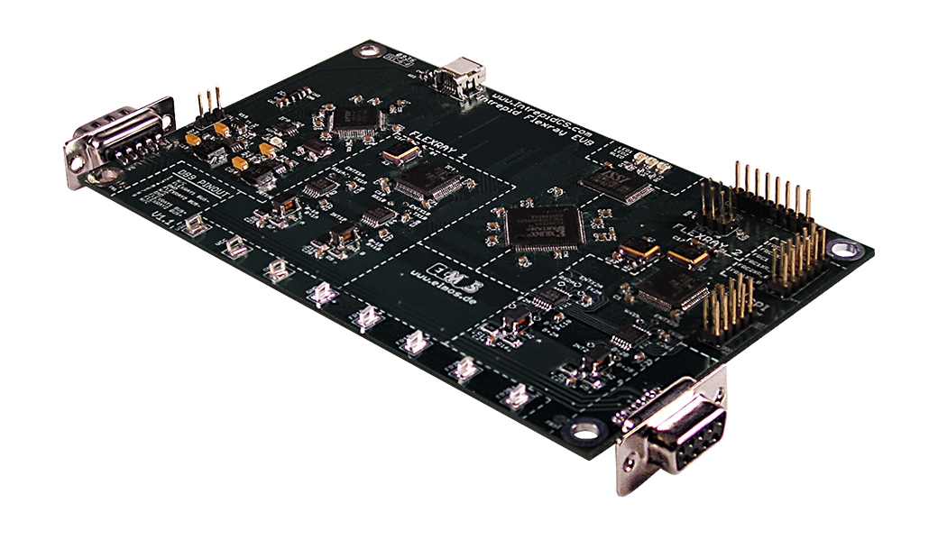 • DB9 FlexRay connector allows FlexRay tool connection or daisy chaining of multiple FlexRay EVBs without cabling.