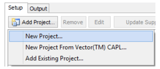 To add a new project, click on the “Add Project…” button (Figure 1), and a drop down will appear giving the options to add a new project, convert from CAPL, or add an existing project.