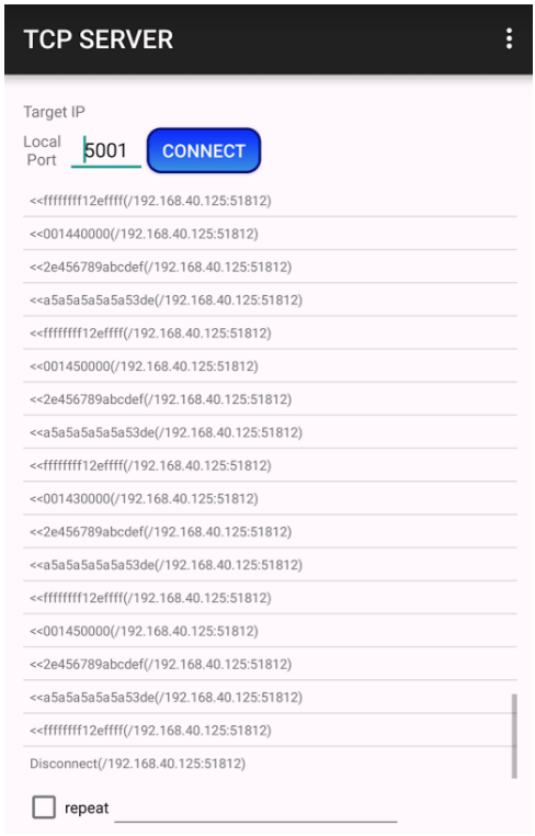 Figure 8: A sample TCP Server application used for testing. - Click button from Graphical Panel to instruct C Code Interface DLL to start forwarding CAN data to the connected TCP Server. Data sent by the TCP Server can be viewed in Vehicle Spy by observing the ‘Output’ tab of the C Code Interface window.
